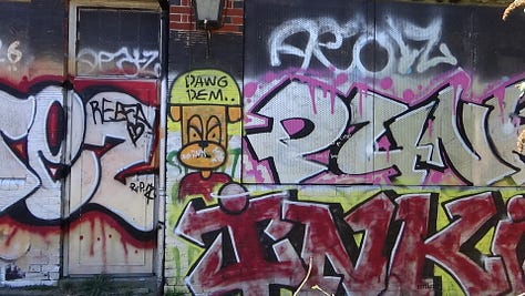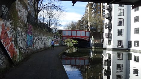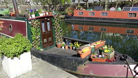 On Monday, before meeting a friend I hadn’t seen in 8 years, I squeezed in a second artist date. I wandered along Little Venice near Paddington Station. London was dazzling in the sunshine. I was fascinated by the canal boats. Some were immaculately kept, complete with little flower gardens. Others were more neglected. A little cat peeked at me through one window. I was particularly drawn to the graffiti under the bridges. Visually, I like the mishmash of colours and mark making.